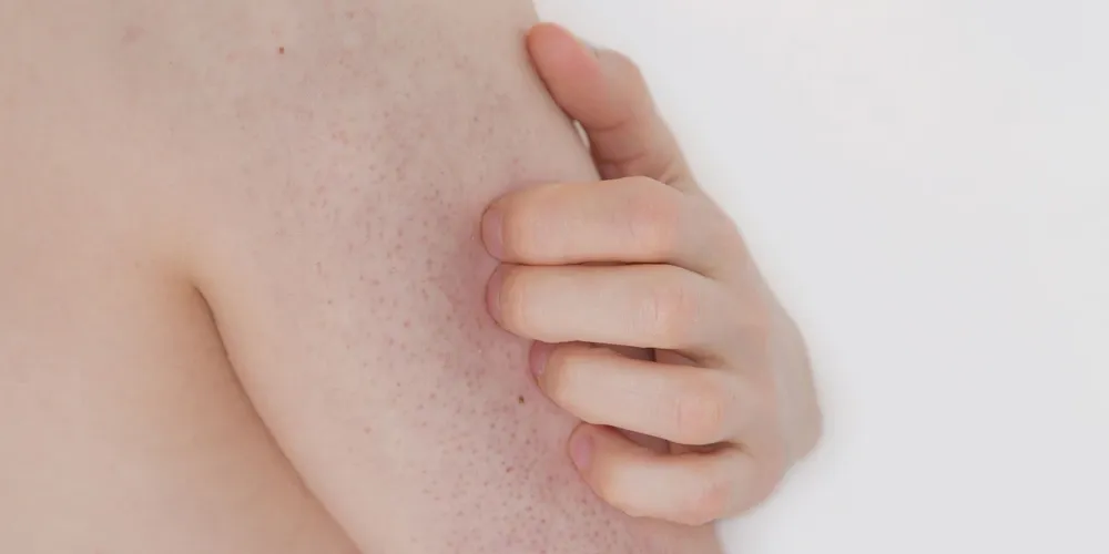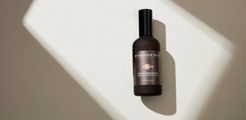 The best way to treat this problem is with an AHA/BHA chemical exfoliant. I’d recommend Synergie Skin's BAcne, which is a dual-action exfoliation spray formulated with 19% combination of lactic (AHA) and salicylic (BHA) acids. These two acids work in synergy, with lactic acid exfoliating the skin surface while its partner salicylic acid reaches deeper into the pore to remove the trapped keratin plug. The convenient spray makes it easy to reach the back area, which is often a stubborn spot to reach. Apply to the problem area in the morning immediately after showering. Follow with a light body moisturiser, such as Synergie Skin's B-JuvEnate, to prevent surface flaking and dryness.